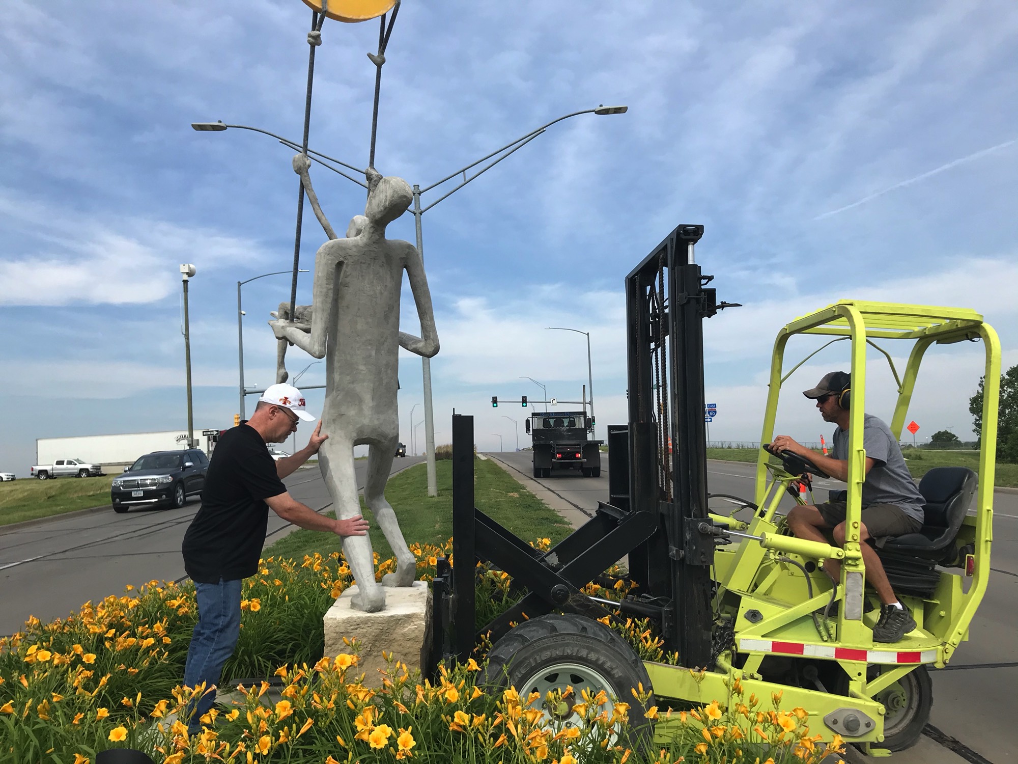 Douglas Avenue Interchange Public Art Project Commission. Two sculptures, each side of 1-80 overpass bridge. Completed June 2020.