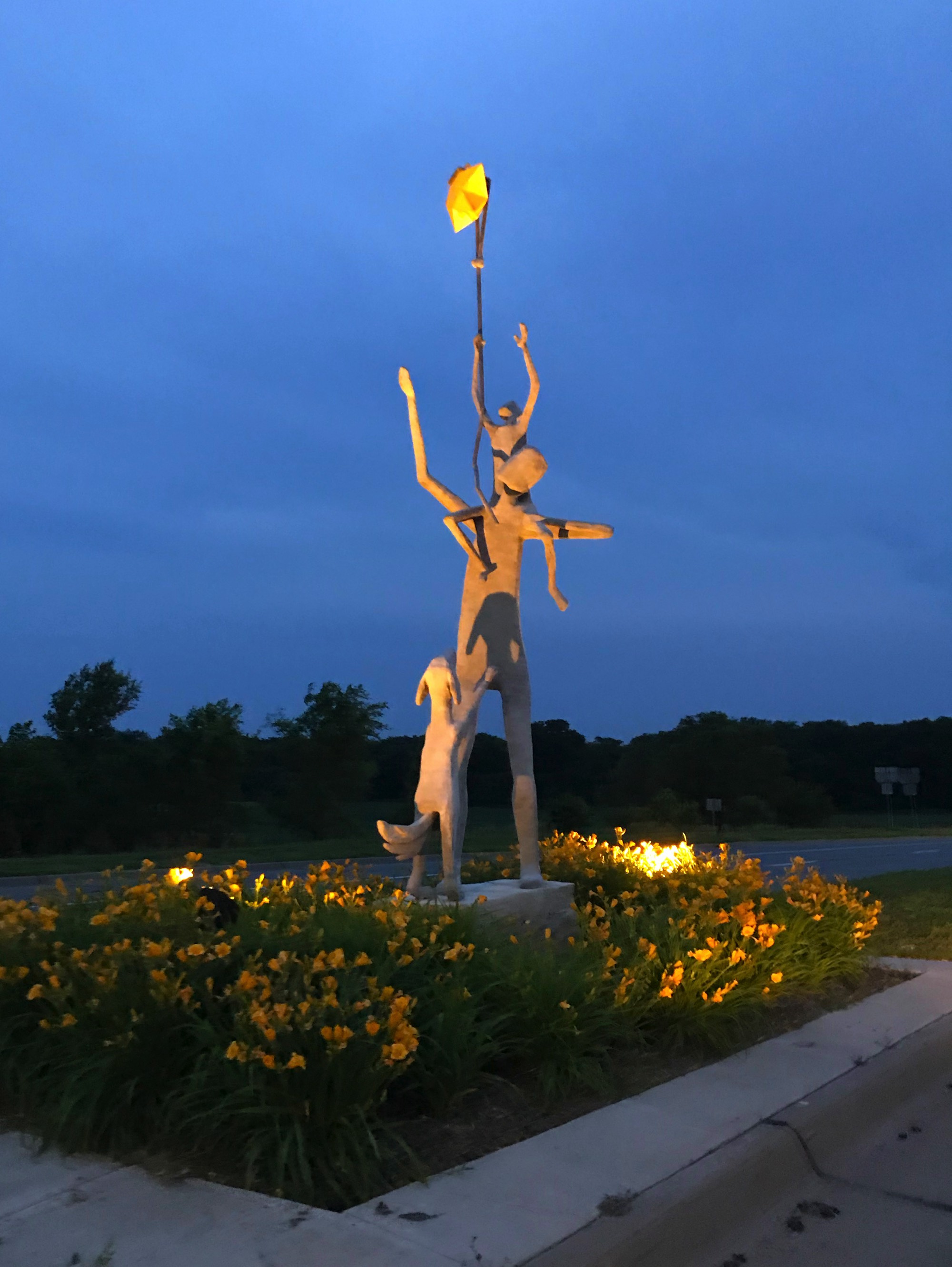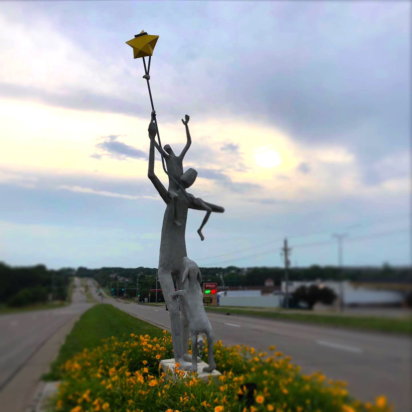 Artist Statement: It's my hope that these 2 sculptures, "Love You to the Moon" and "Raise You to the Stars" might be quiet reminders along a busy interchange of what is truly important: a love for family, a nurturing of children, a strong sense of home and a hope in the future.